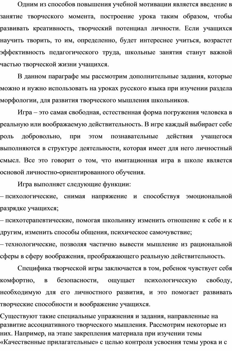 В данном параграфе мы рассмотрим дополнительные задания, которые можно и нужно использовать на уроках русского языка при изучении раздела морфологии, для развития творческого мышления школьников.