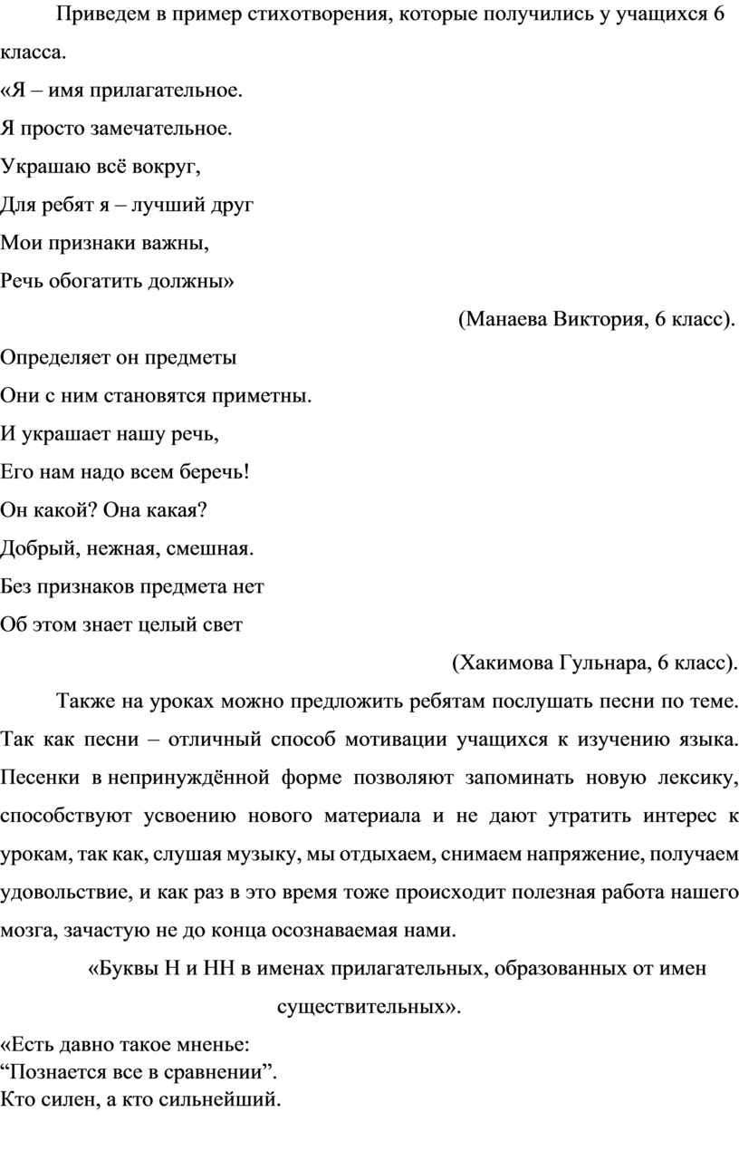 Аннотация: рассматриваются приёмы развития творчества на уроках русского языка при изучении раздела «Имя прилагательное». Представлен опыт работы с обучающимися.