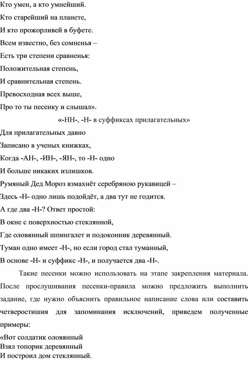 Такие песенки можно использовать на этапе закрепления материала. После прослушивания песенки-правила можно предложить выполнить задание, где нужно объяснить правильное написание слова или составить четверостишия для запоминания исключений, приведем полученные примеры: