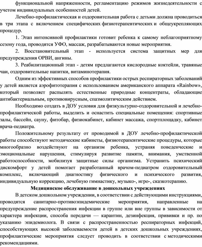 Лечебно-профилактическая и оздоровительная работа с детьми должна проводиться в три этапа с включением специфических физиотерапевтических и общеукрепляющих процедур.