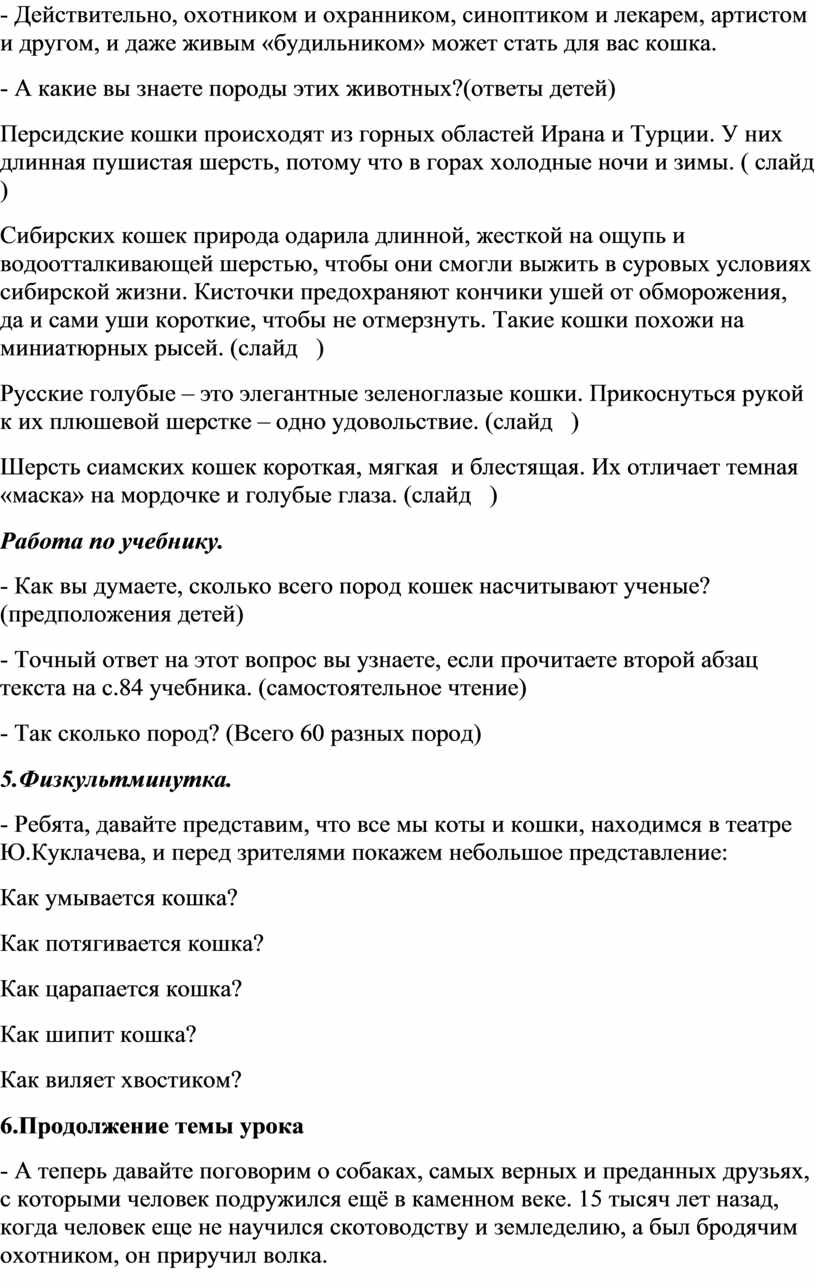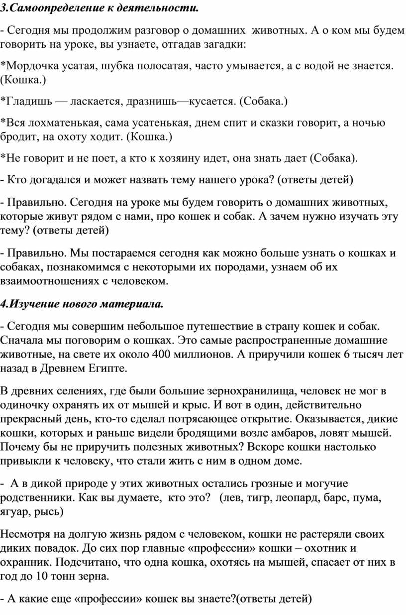 - Правильно. Мы постараемся сегодня как можно больше узнать о кошках и собаках, познакомимся с некоторыми их породами, узнаем об их взаимоотношениях с человеком.