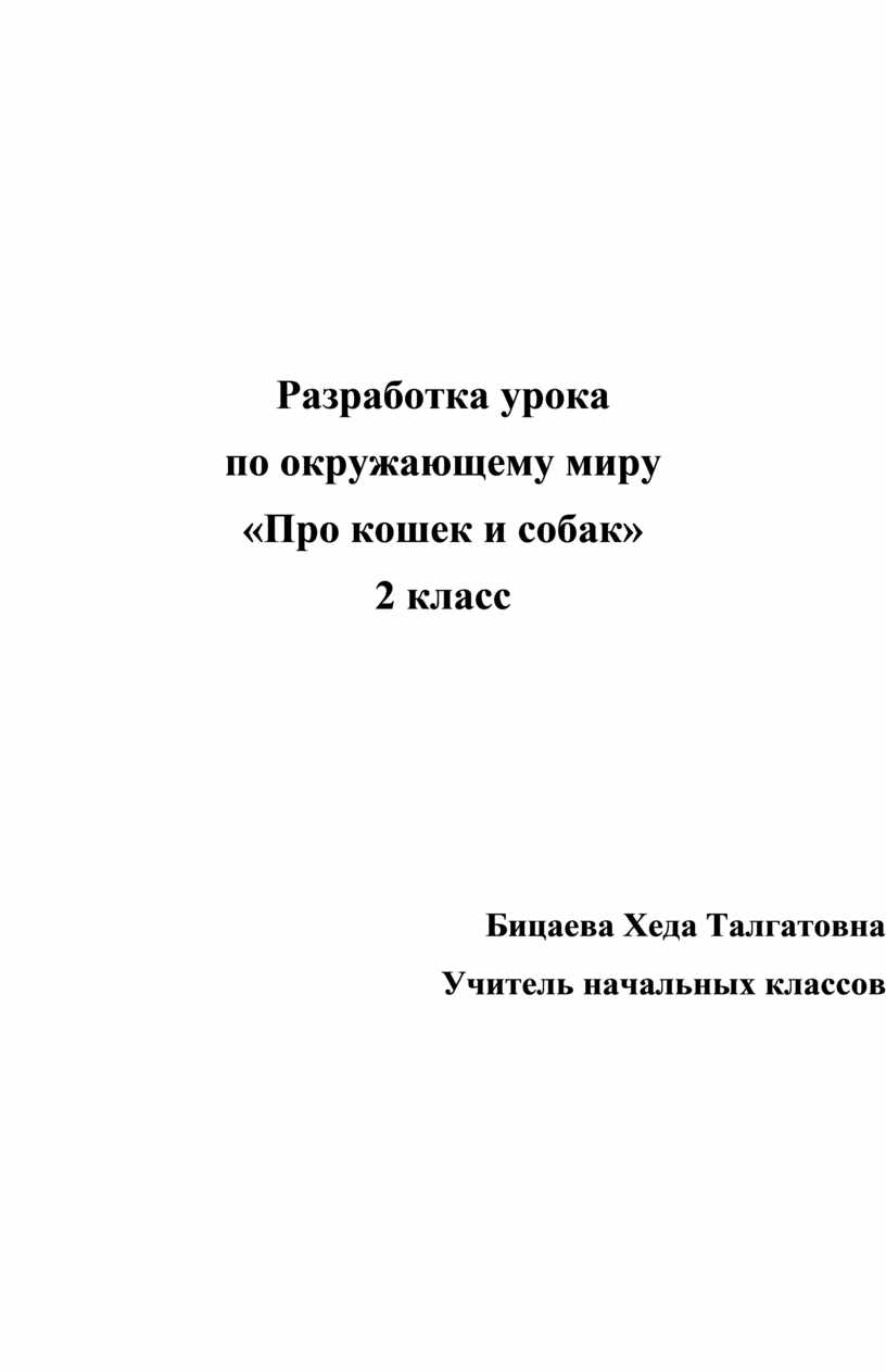 Цели урока: обобщить и расширить представление детей о домашних животных; познакомить с некоторыми породами кошек и собак, а также их ролью в жизни человека; способствовать развитию устной речи обучающихся; воспитывать любовь к животным, ответственность за них и бережное отношение к ним.