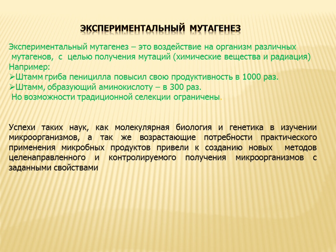 Экспериментальный мутагенез – это воздействие на организм различных