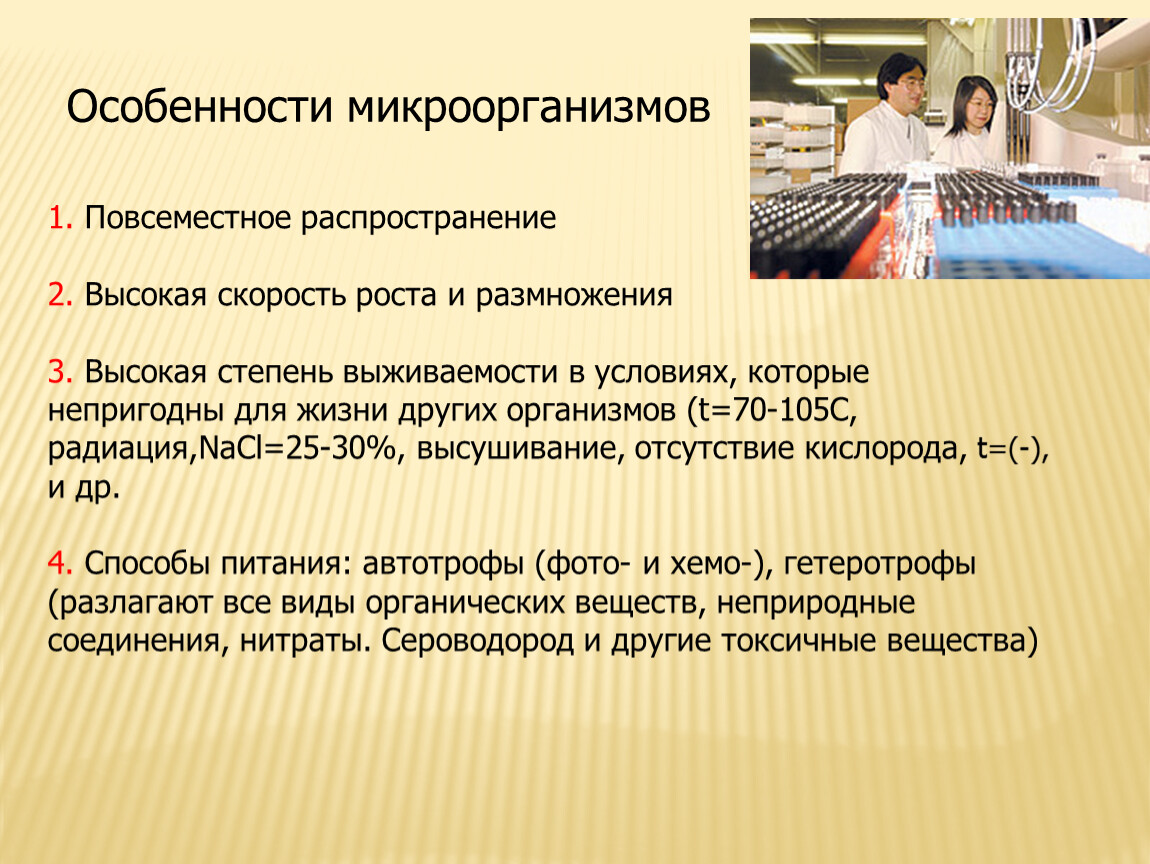 Особенности микроорганизмов