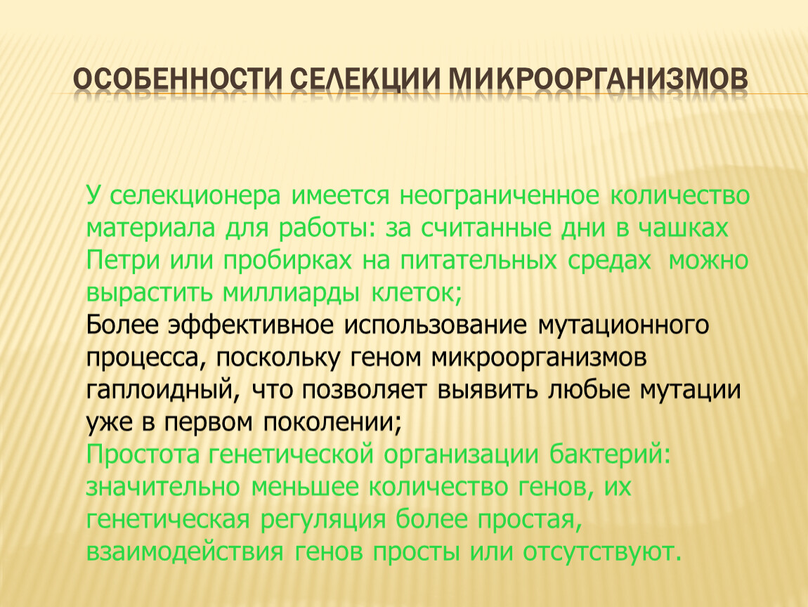 Особенности селекции микроорганизмов