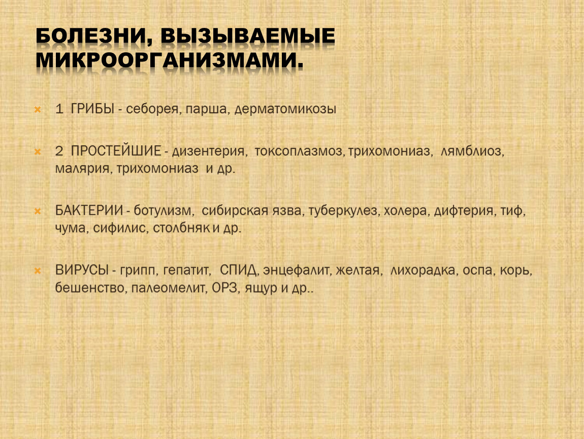 Болезни, вызываемые микроорганизмами.