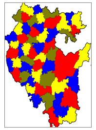 Раскраска карты Республики Башкотостан пятью красками