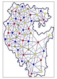 Для раскраски карт с помощью графов применим "жадный" алгоритм раскраски графа. Суть этого алгоритма состоит в следующем: сначала мы пытаемся раскрасить как можно больше вершин в один цвет, затем закрашиваем во второй цвет также по возможности максимальное число оставшихся вершин, и т.д. При закраске вершин в новый цвет мы выполняем следующие действия: 1) Выбираем произвольную не закрашенную вершину и назначаем ей новый цвет; 2). Просматриваем список не закрашенных вершин и для каждой из них определяем, соединена ли она ребром с вершиной, уже закрашенной в новый цвет. Если не соединена, то к этой вершине также применяется новый цвет. Этот алгоритм назван "жадным" из-за того, что каждый цвет применяется к максимально большому числу вершин, без возможности пропуска некоторых из них или перекраски ранее закрашенных.