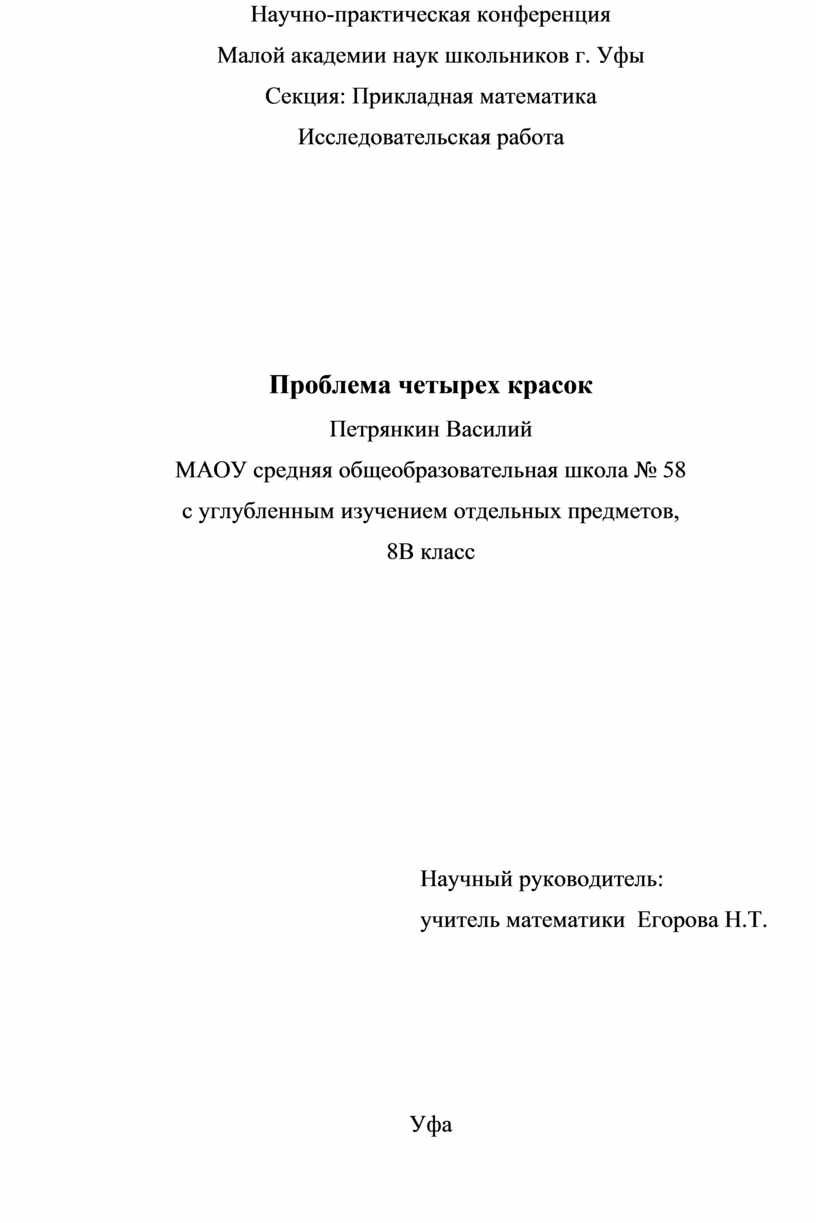 В своей работе мы выдвинули следующее предположение: выяснить достаточно ли четырёх красок для раскраски географической карты, состоящей из более 40 регионов.