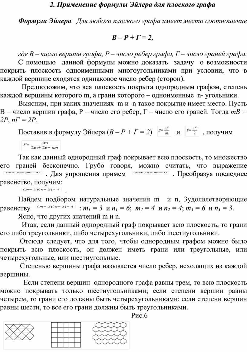 2. Применение формулы Эйлера для плоского графа