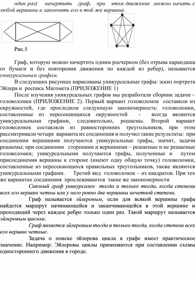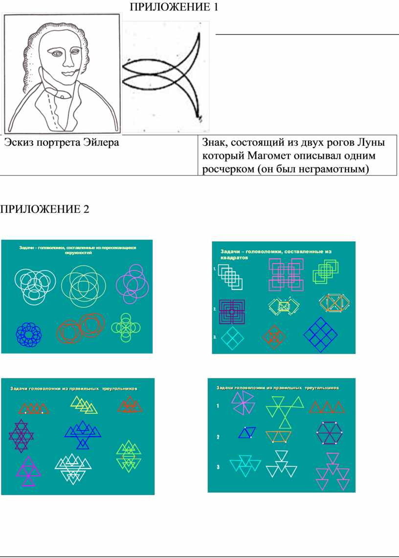 В следующих рисунках нарисованы уникурсальные графы: эскиз портрета Эйлера и роспись Магомета (ПРИЛОЖЕНИЕ 1)