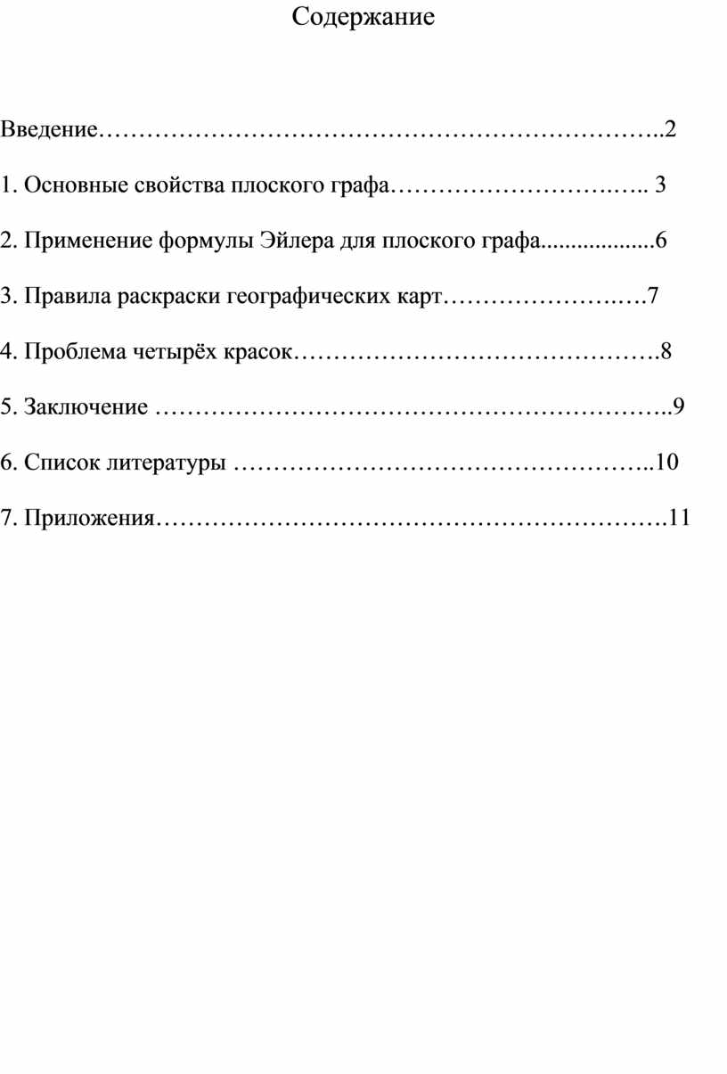 2. Применение формулы Эйлера для плоского графа...................6
