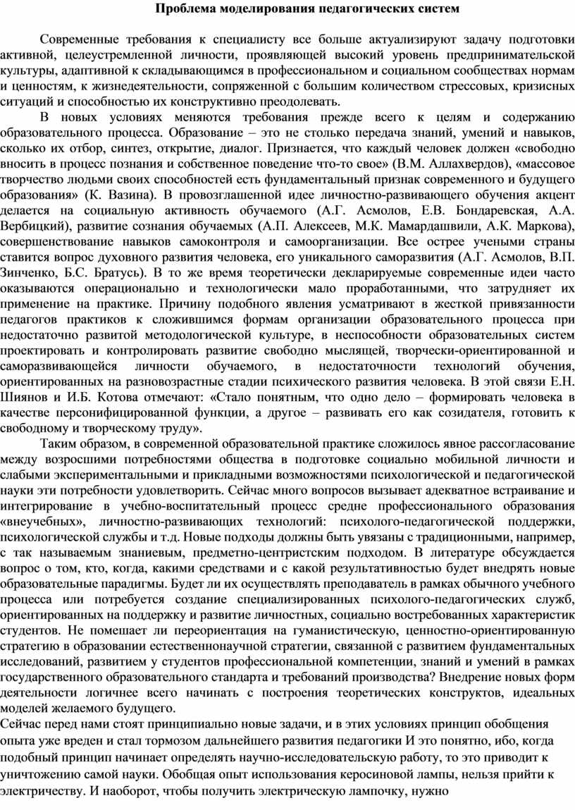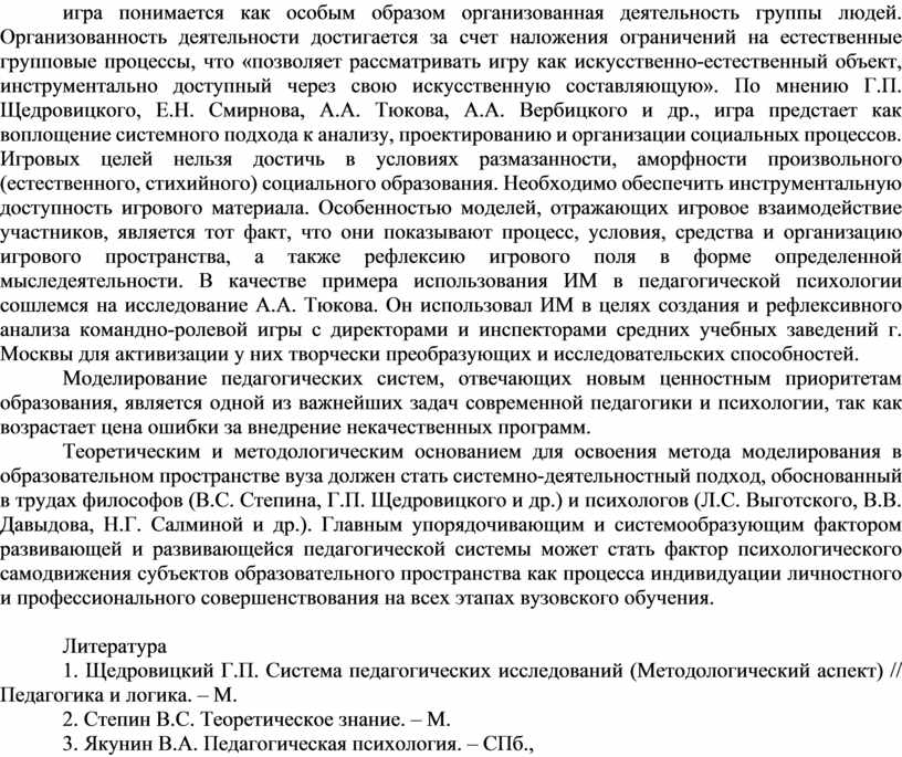 1. Щедровицкий Г.П. Система педагогических исследований (Методологический аспект) // Педагогика и логика. – М.