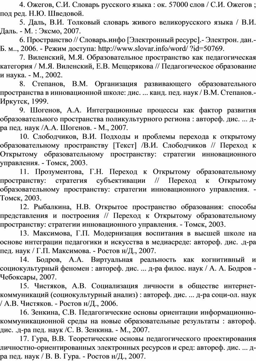 10. Слободчиков, В.И. Подходы и проблемы перехода к открытому образовательному пространству [Текст] /В.И. Слободчиков // Переход к Открытому образовательному пространству: стратегии инновационного управления. - Томск, 2003.