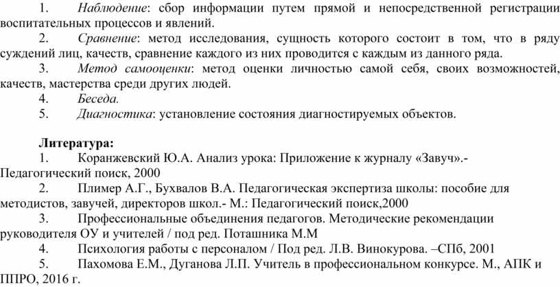 2. Плимер А.Г., Бухвалов В.А. Педагогическая экспертиза школы: пособие для методистов, завучей, директоров школ.- М.: Педагогический поиск,2000