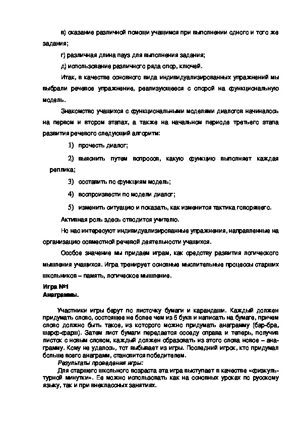 мышления учащихся. Игра тренирует основные мыслительные процессы старших