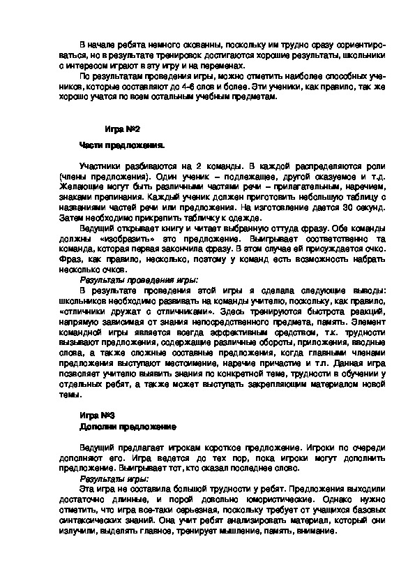 предложения выступают местоимение, наречие причастие и т.п. Данная игра