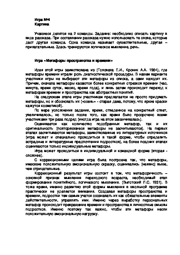 Идея этой игры заимствована из (Головаха Е.И., Кроник А.А. 1984), где