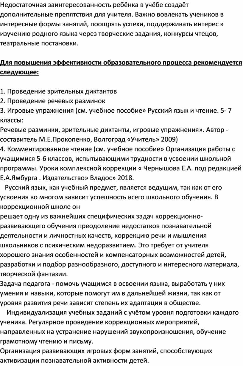 решает одну из важнейших специфических задач коррекционно-развивающего обучения преодоление недостатков познавательной деятельности и личностных качеств, коррекцию речи и мышления школьников с психическим недоразвитием. Это требует от учителя