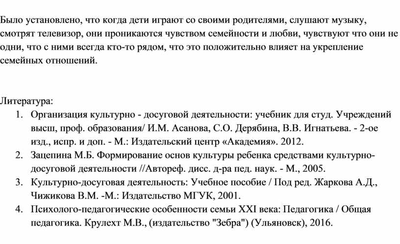 Для полноценного развития ребенка родители должны использовать различные интересные виды досуга в семье. Это поможет им понять своего ребенка и сблизиться с ним. В современном обществе досуг претерпел существенные изменения, как и по видам самого досуга, так и по содержанию.