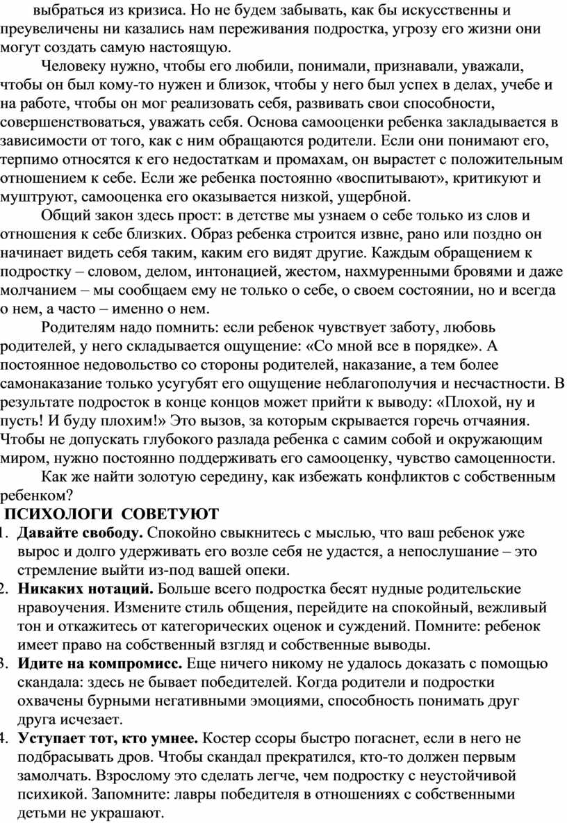 ПСИХОЛОГИ СОВЕТУЮТ