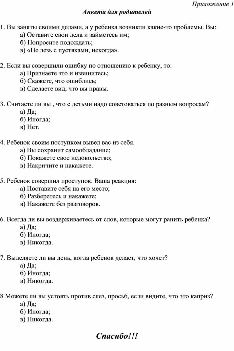 Анкета для родителей