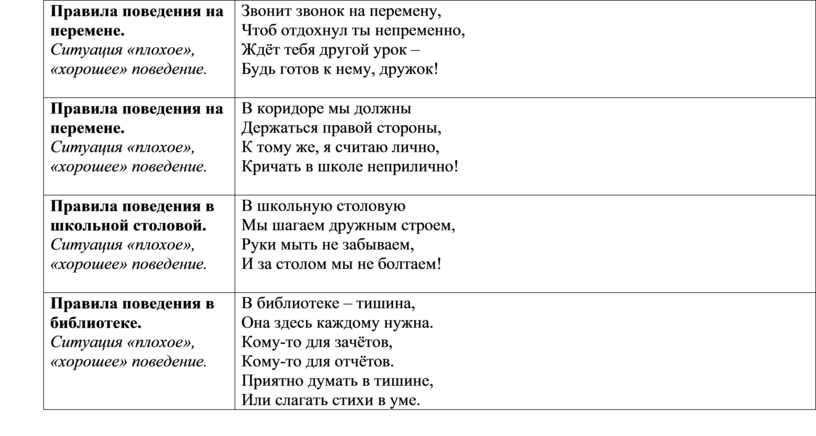 Правила поведения на перемене. Ситуация «плохое», «хорошее» поведение. |