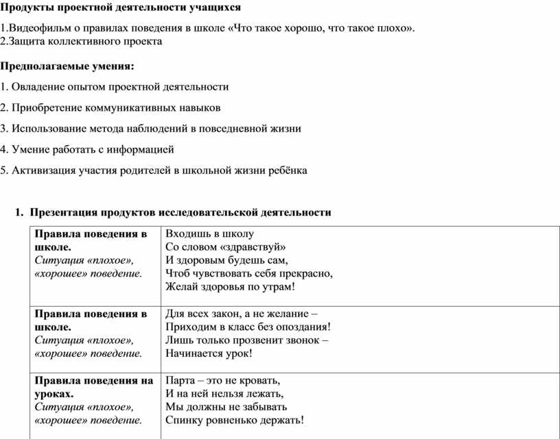 • Разыграть сценки возможных ситуаций о «плохом» и «хорошем» поведении в школе: запись видео;