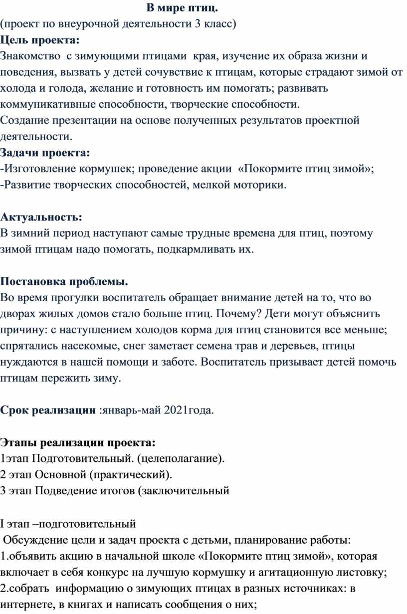 (проект по внеурочной деятельности 3 класс)