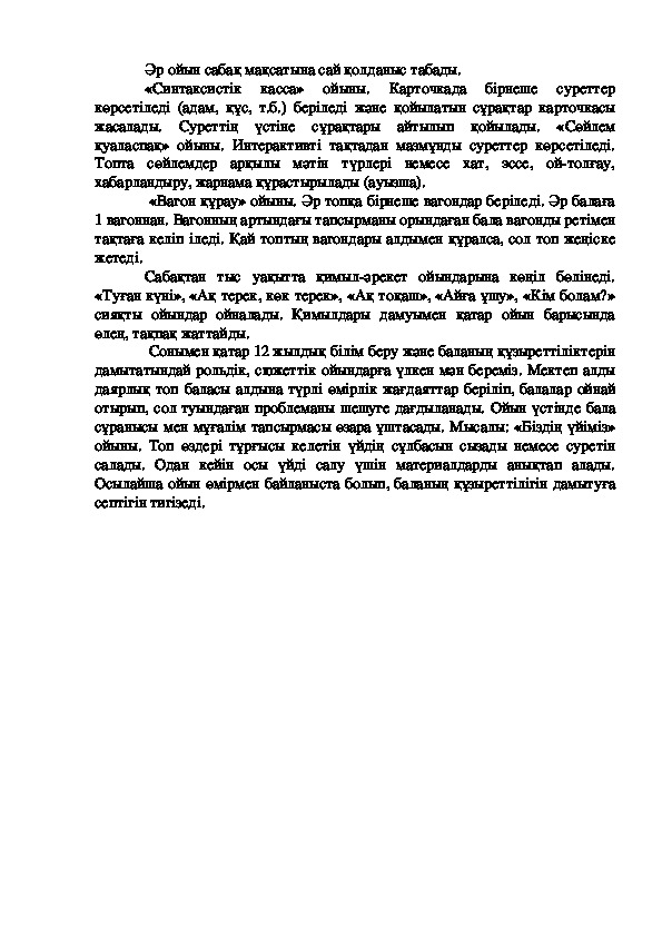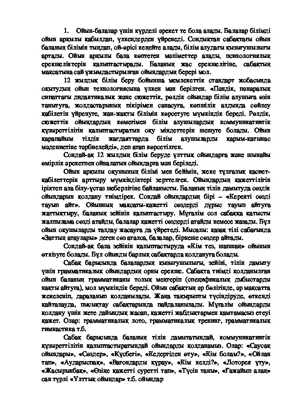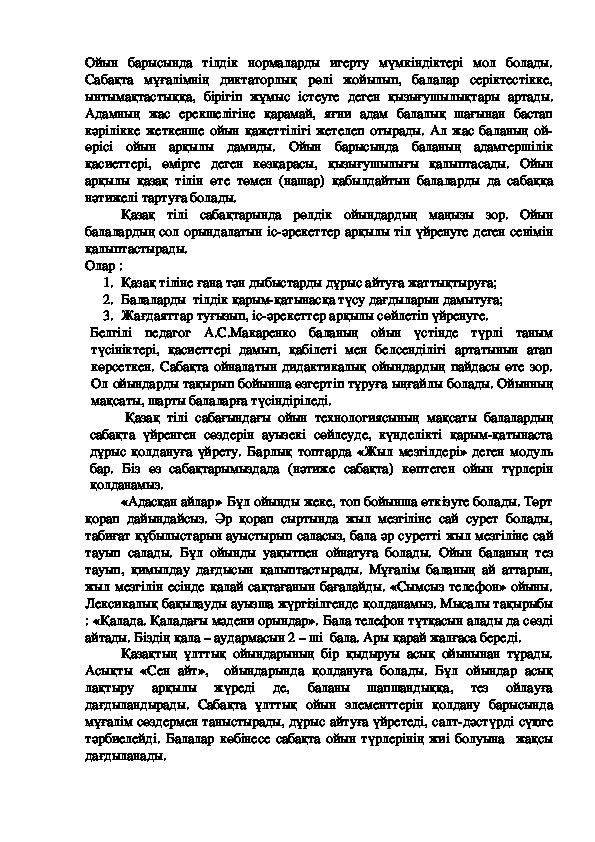 сабақ оқыту мен қатар ойнай да білу керек. Қаазақ тілі құралдарының