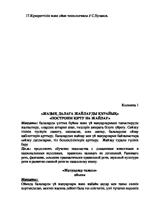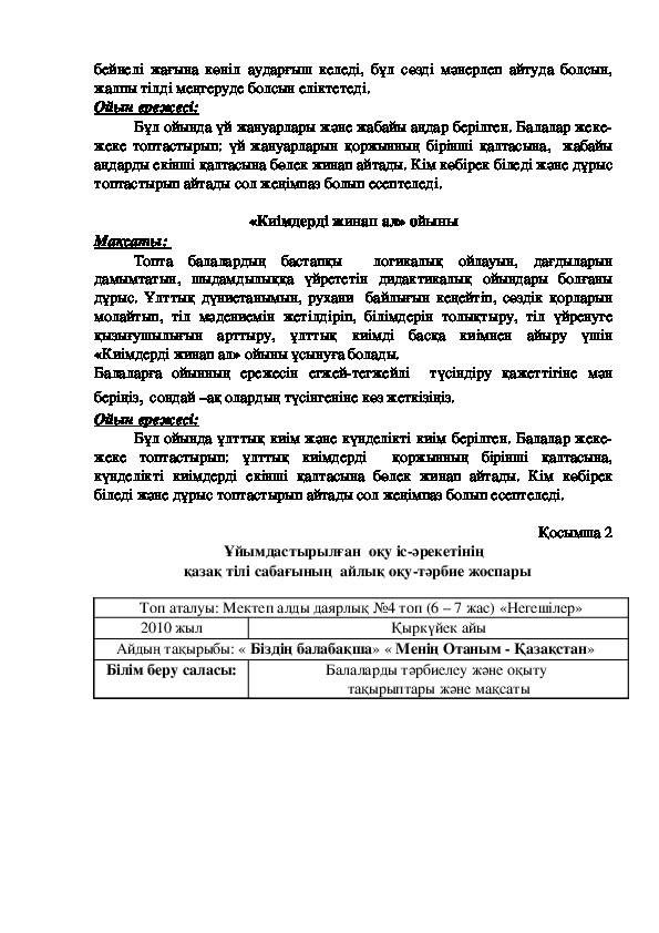 дағдыларын бекіту жұмыстары ойын арқылы жүзеге асырылады. Педагог