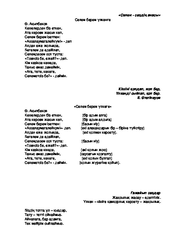 «Бізз мектепке барамыз» бағдарламасына сәйкес жасалды.Мазмұны: