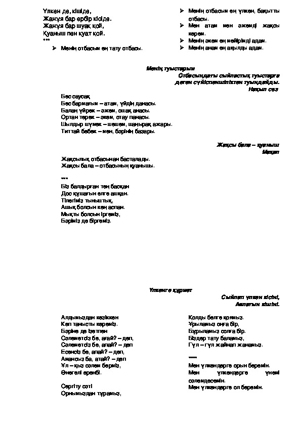 ұлттық ерекшеліктерін танытарлықтай болуы керек.
