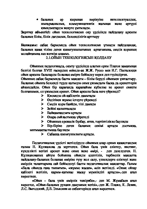2.1. Ойын технологиясын қолдану ............................57 беттер