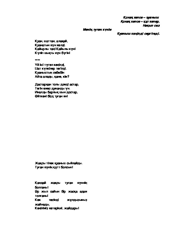 Орнымыздан тұрамыз,Қонақ келсе – қуаныш