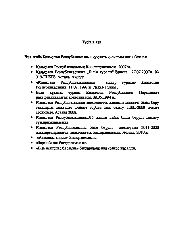 Бұл жоба Қазақстан Республикасының құқықтық –нормативтік базасы: