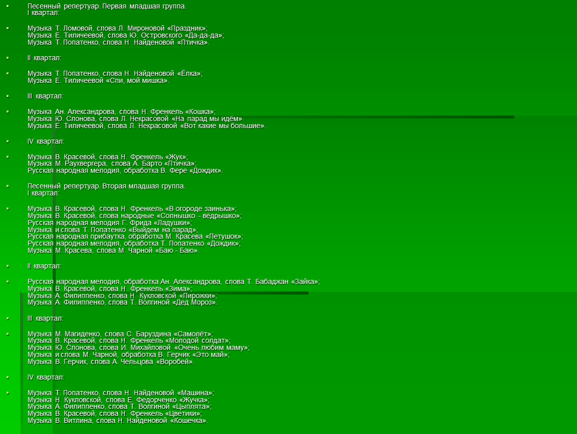Песенный репертуар. Вторая младшая группа.І квартал: