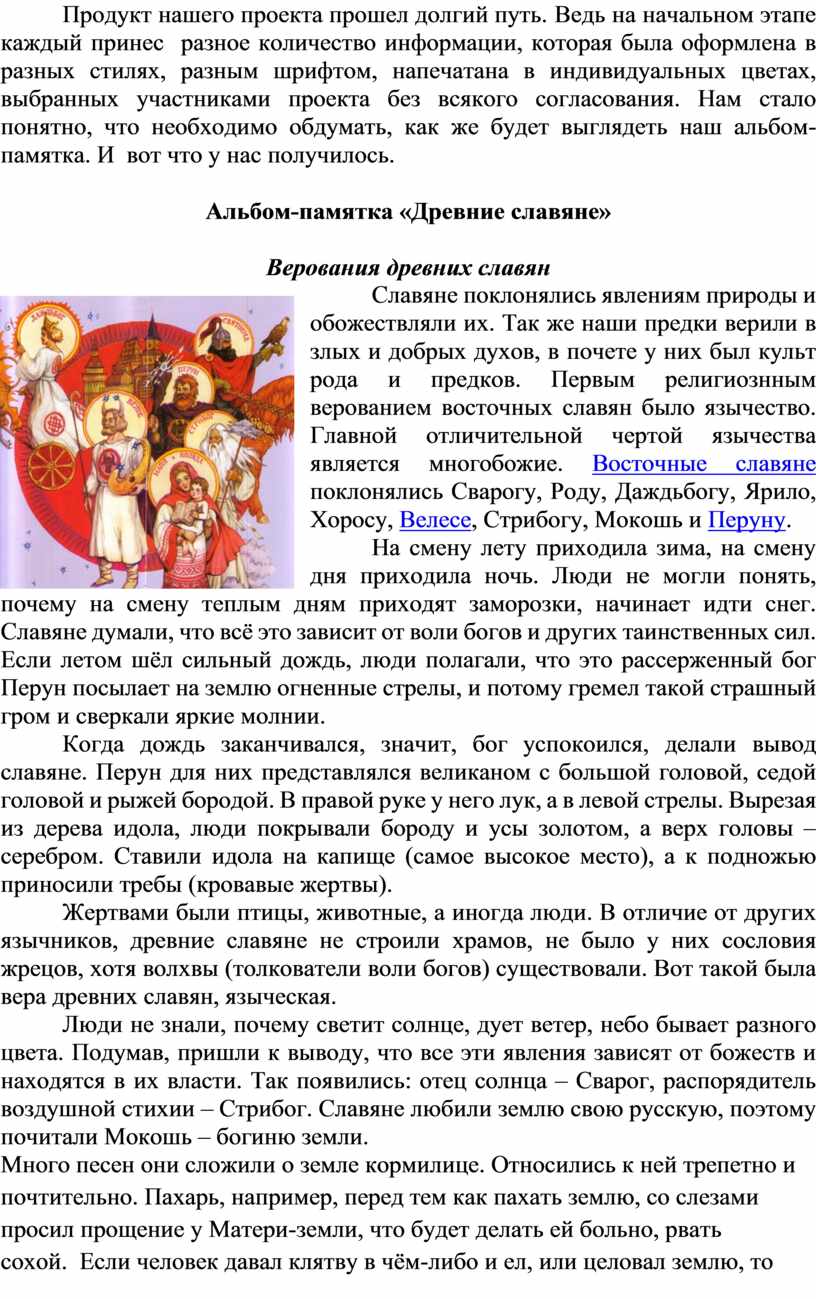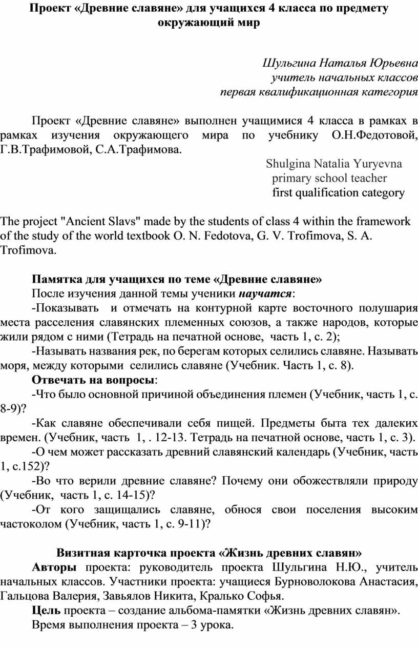 Проект «Древние славяне» для учащихся 4 класса по предмету окружающий мир