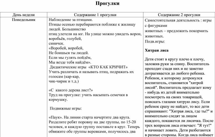 Содержание 2 прогулки |