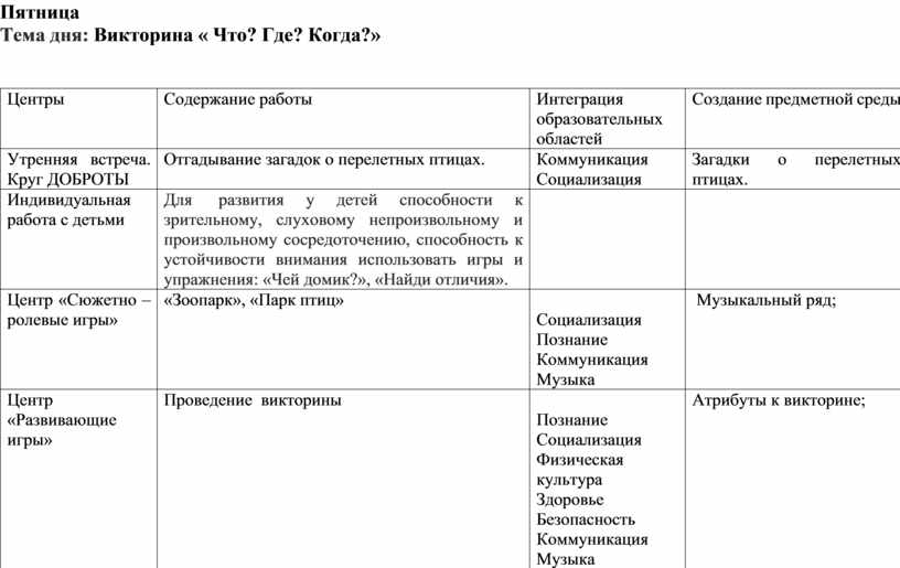 Интеграция образовательных областей |