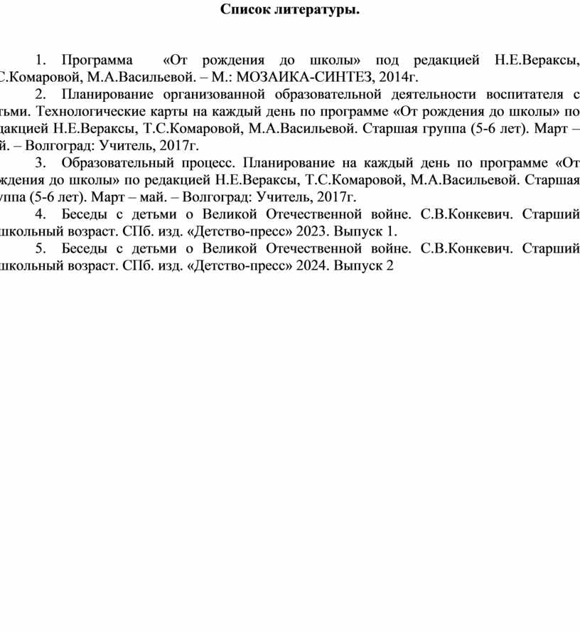 5. Беседы с детьми о Великой Отечественной войне. С.В.Конкевич. Старший дошкольный возраст. СПб. изд. «Детство-пресс» 2024. Выпуск 2