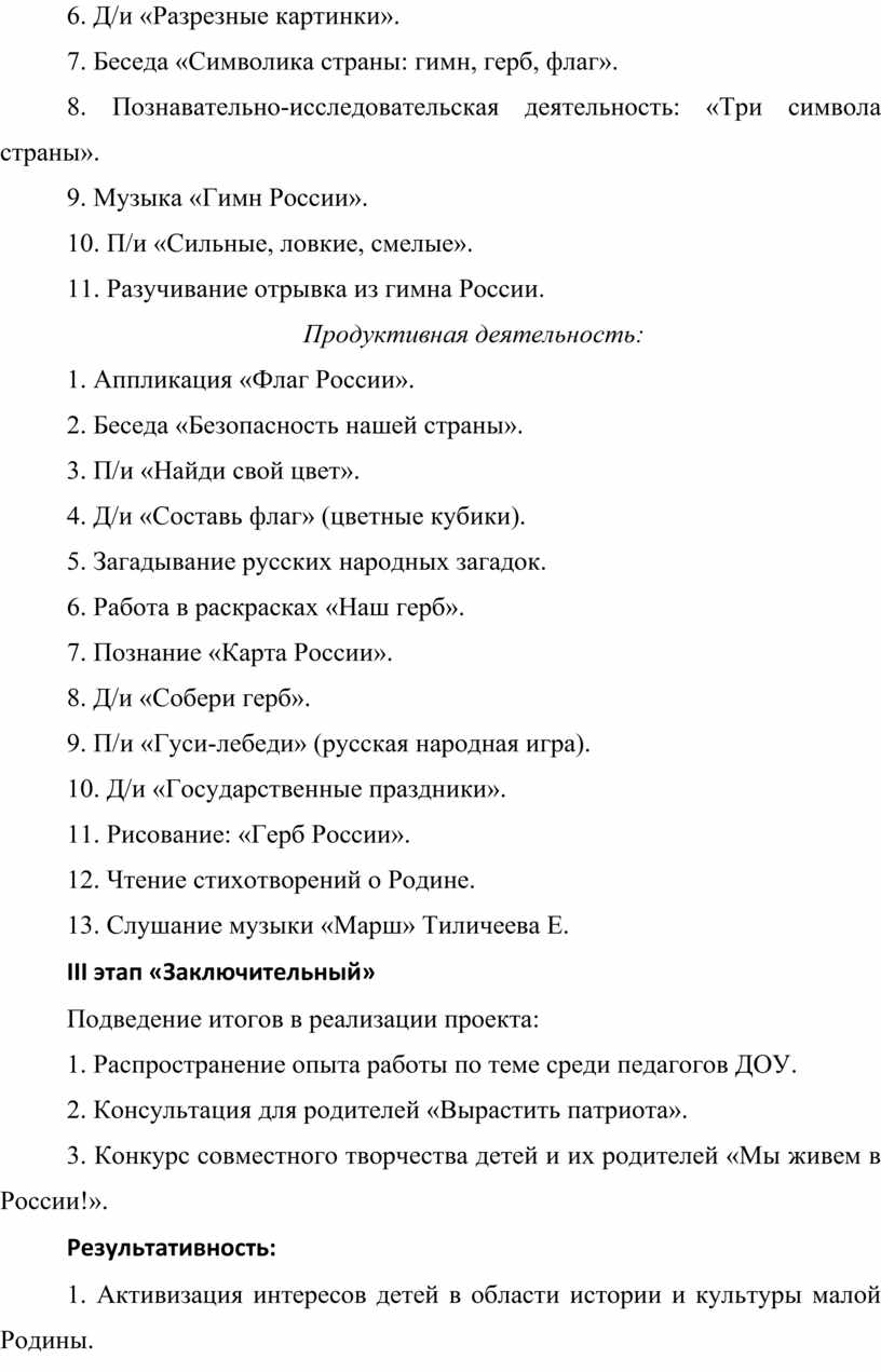 Вывод: Дети стали понимать смысл праздника «День флага России», у дошкольников развилась познавательная активность, творческие способности, совершенствование знаний о нашей Родине.