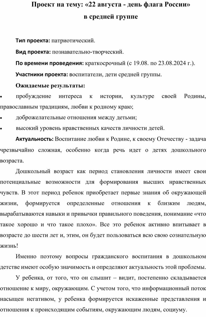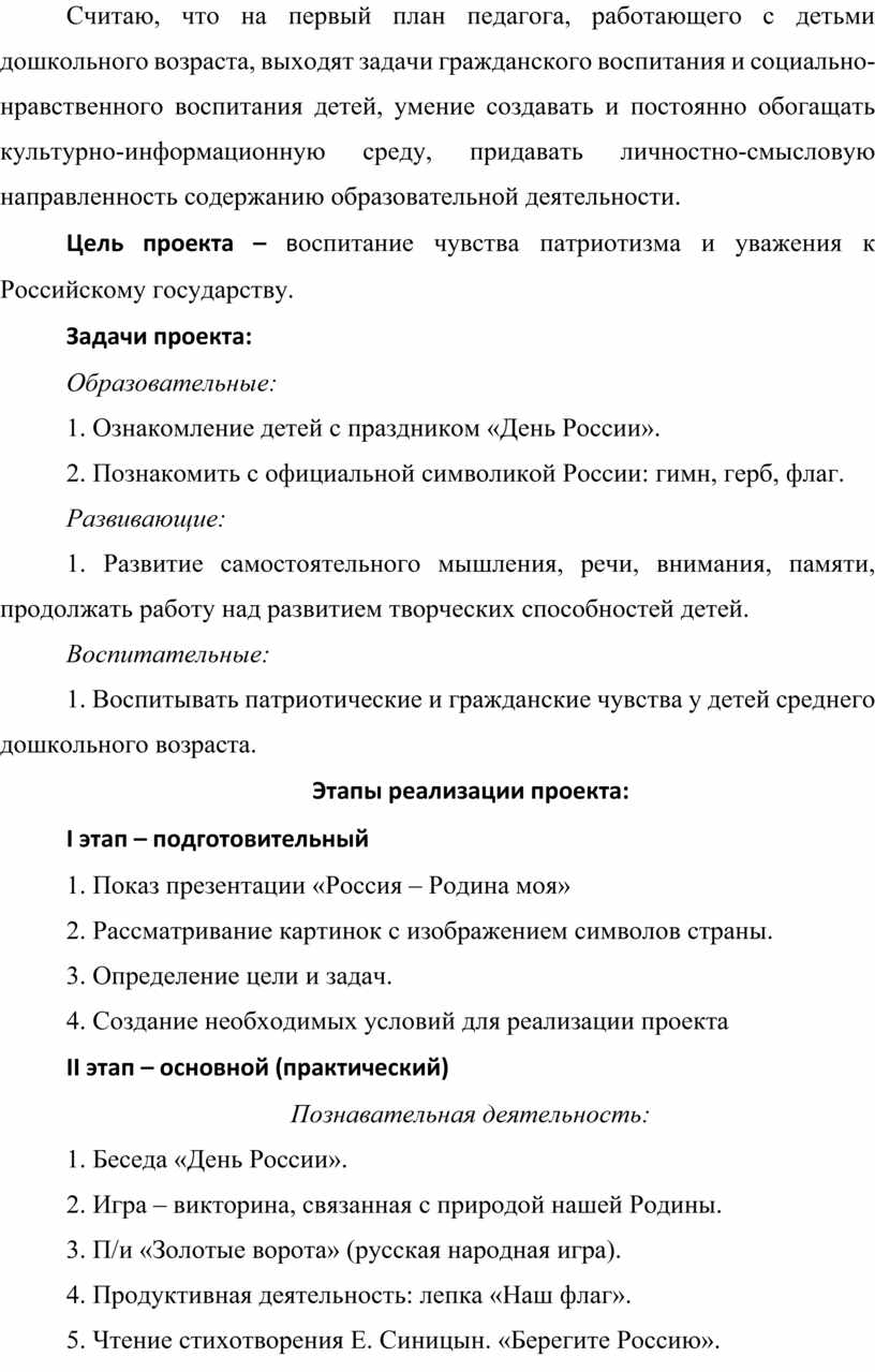 1. Воспитывать патриотические и гражданские чувства у детей среднего дошкольного возраста.