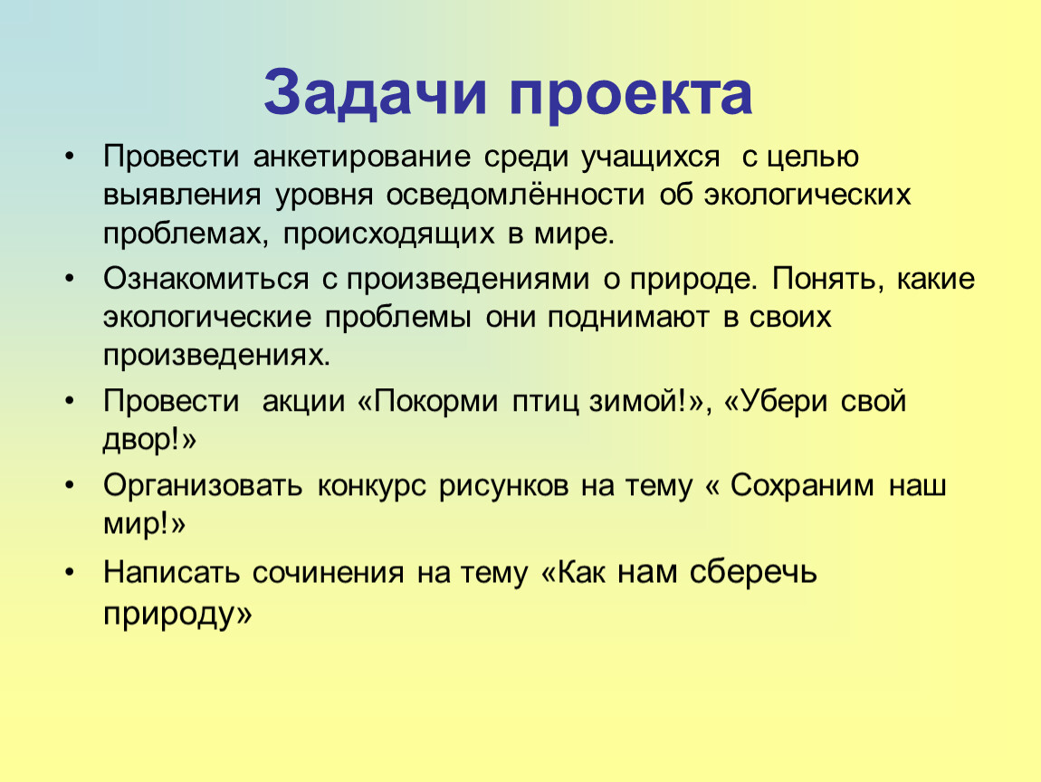 Задачи проекта