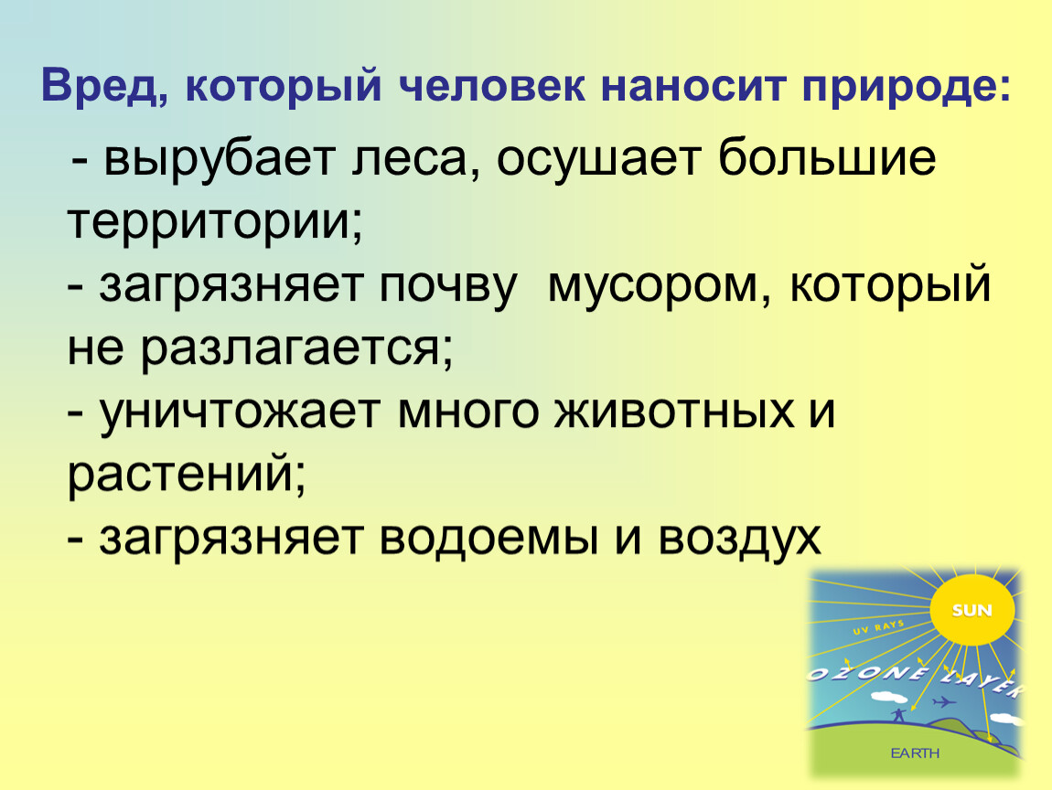 Вред, который человек наносит природе:
