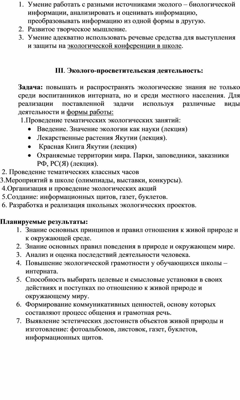 1. На основе проекта составить Программу экологического образования учащихся школы.