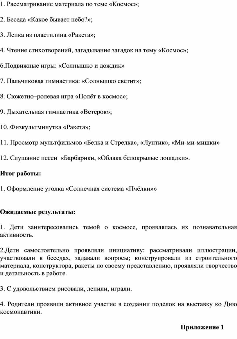 1. Дети заинтересовались темой о космосе, проявлялась их познавательная активность.