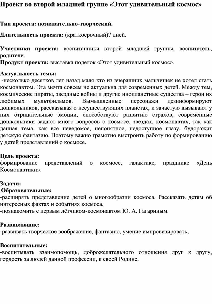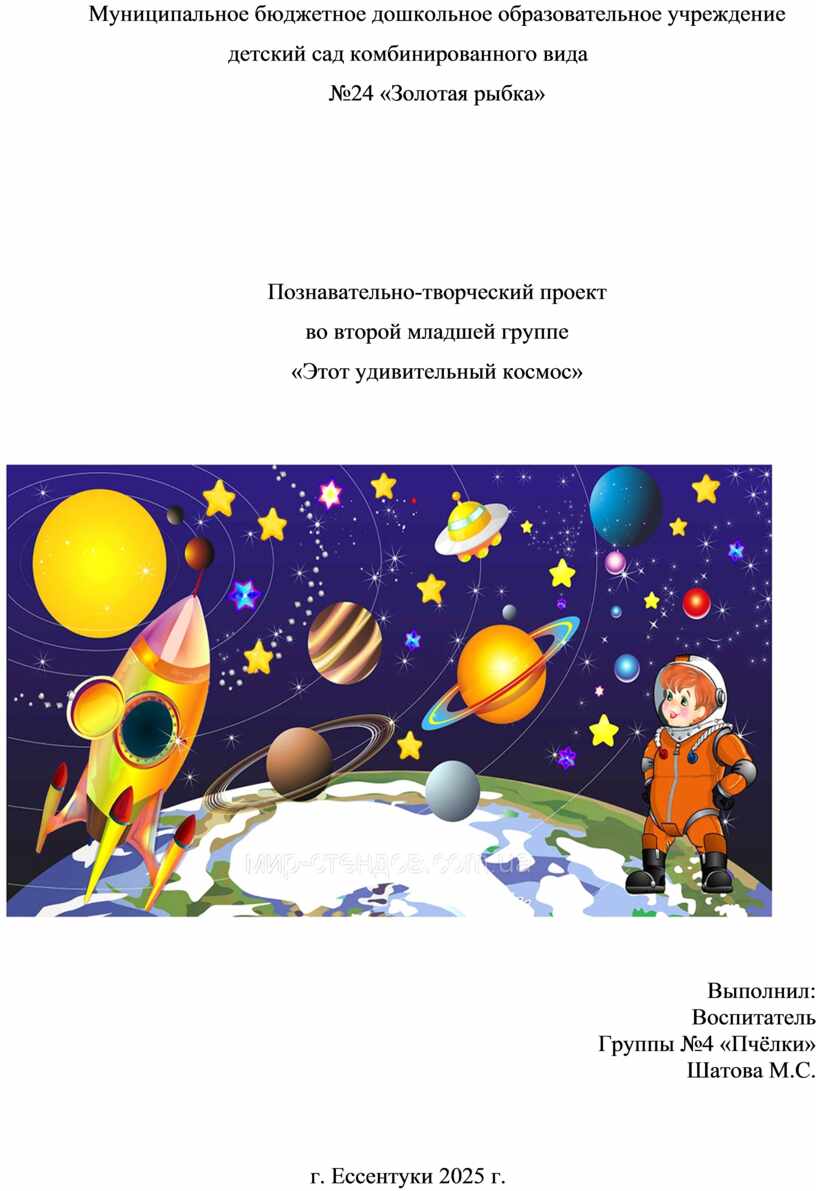 -несколько десятков лет назад мало кто из вчерашних мальчишек не хотел стать космонавтом. Эта мечта совсем не актуальна для современных детей. Между тем, космические пираты, звездные войны и другие инопланетные существа – герои их любимых мультфильмов. Вымышленные персонажи дезинформируют дошкольников, рассказывая о несуществующих планетах, и зачастую вызывают у них отрицательные эмоции, способствуют развитию страхов, современные дошкольники задают много вопросов о космосе, звездах, космонавтах, так как данная тема, как все неведомое, непонятное, недоступное глазу, будоражит детскую фантазию. Поэтому важно грамотно выстроить работу по формированию у детей представлений о космосе.