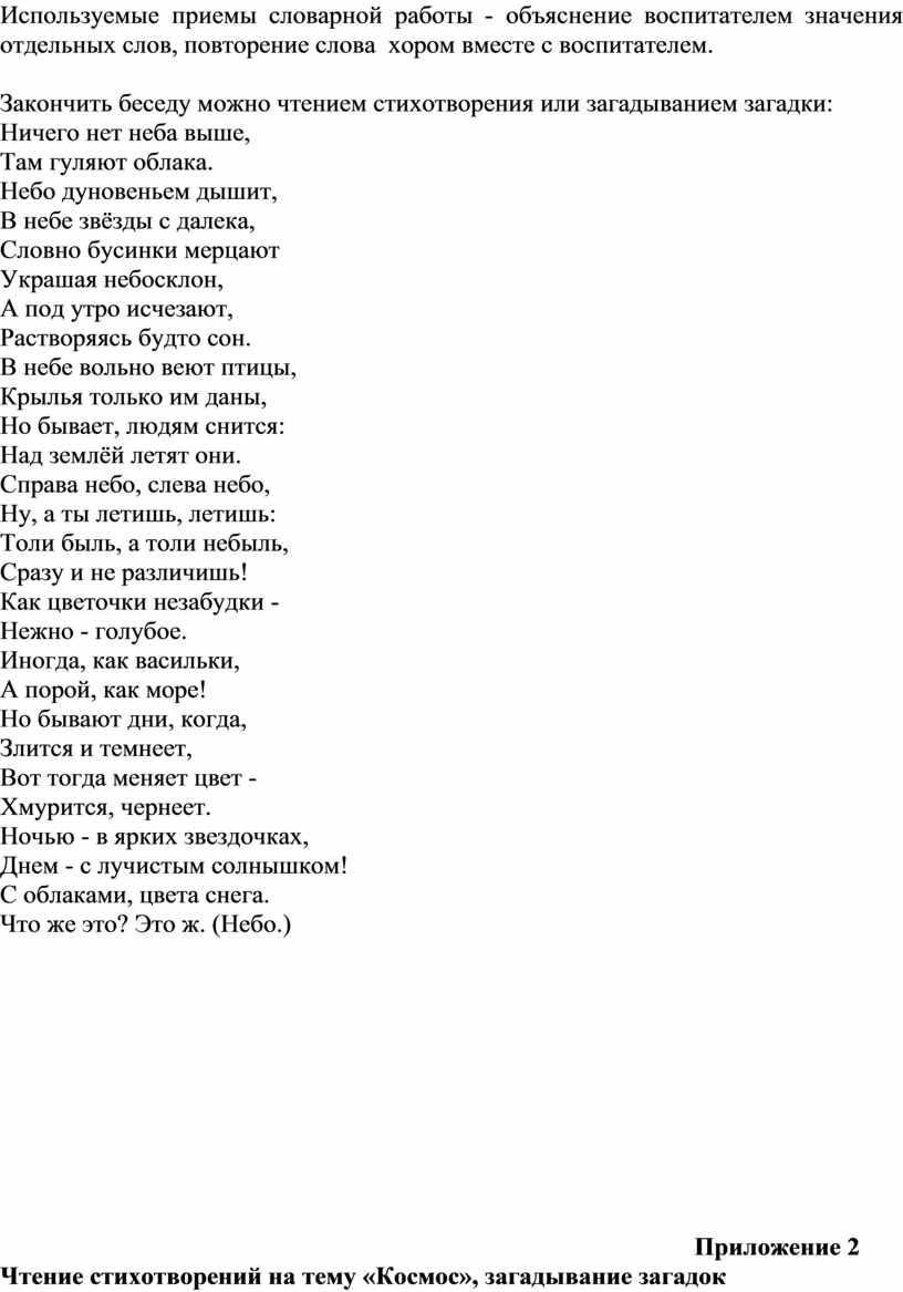 4. Чтение стихотворений, загадывание загадок на тему «Космос»;