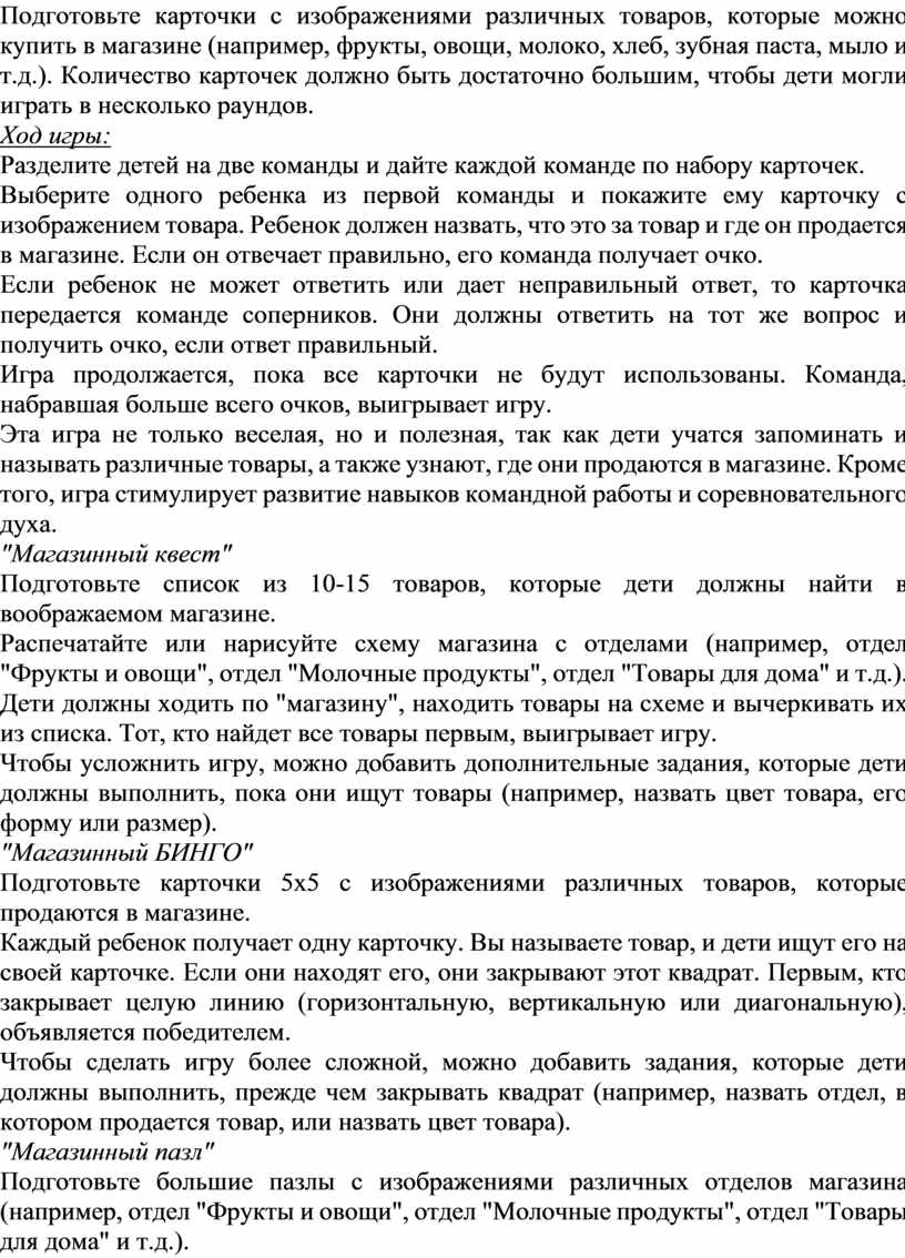 Дайте детям возможность играть в эту игру несколько раз, меняя роли. Это поможет им лучше понять, как работает магазин, и развить навыки общения и сотрудничества.